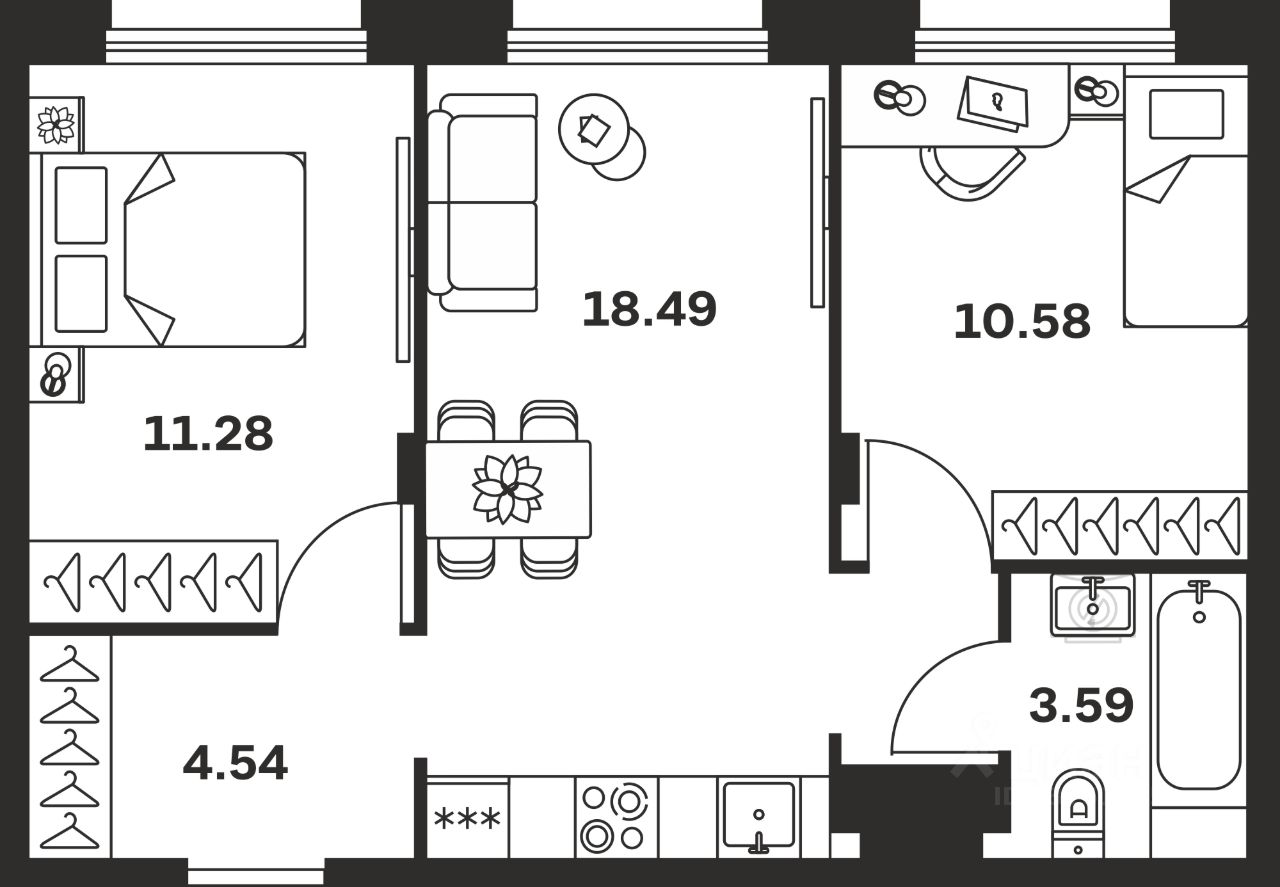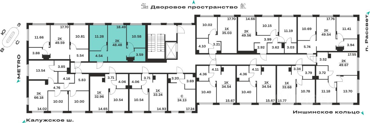 Общая площадь48,48 м²