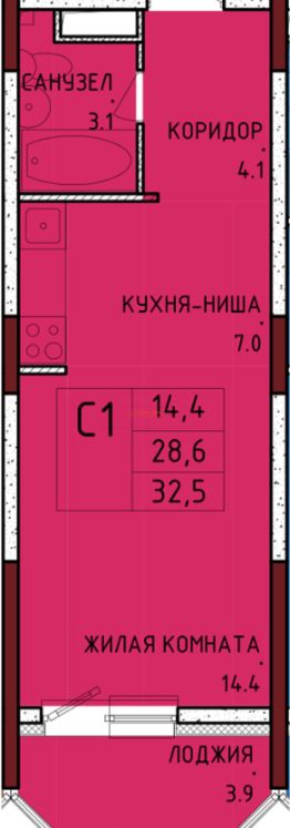 Просторная квартира студия, с совмещённым санузлом и отличной квадратурой.