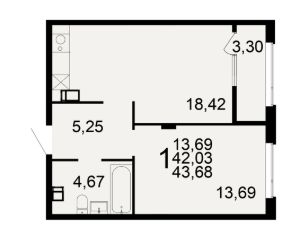 Продаётся 1-комнатная квартира в строящемся доме (Самоварная, 1А (поз.1)), срок сдачи: III-кв. 2026, общей площадью 43.68 кв.м., на 7 этаже.