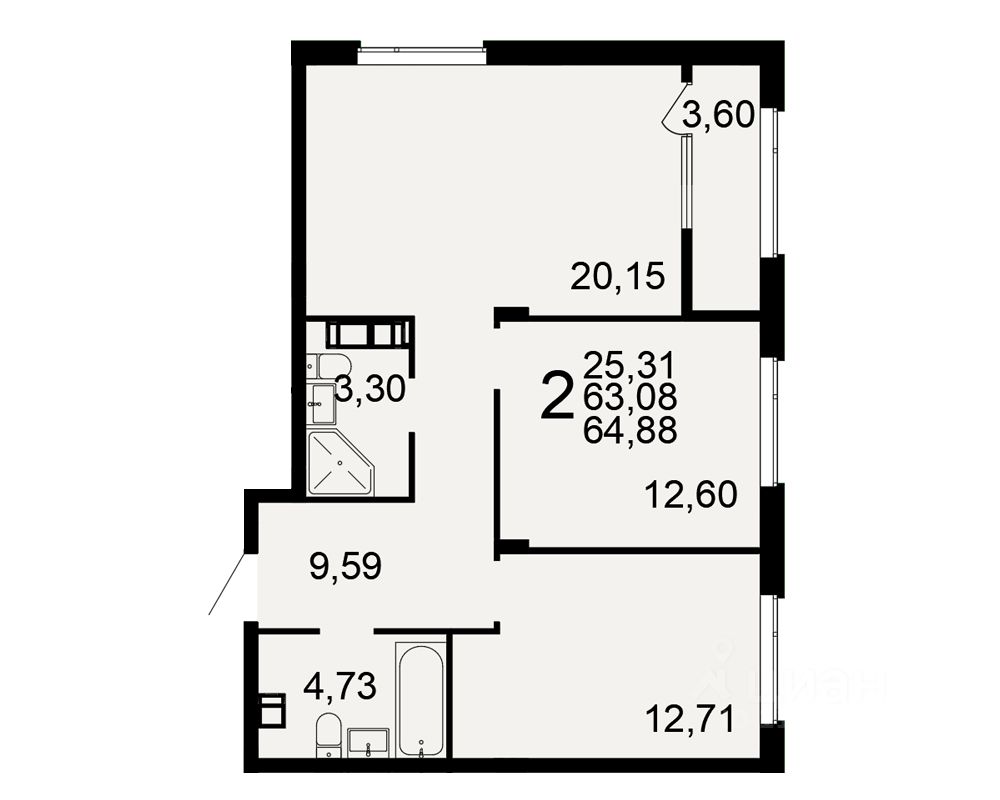 Продаётся 2-комнатная квартира в строящемся доме (Самоварная, 1А (поз.1)), срок сдачи: III-кв. 2026, общей площадью 64.88 кв.м., на 7 этаже.