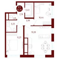 Общая площадь54,86 м²