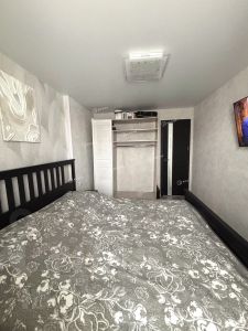 На кухне — полный комплект для комфортного приготовления пищи: газовая плита, вытяжка, встроенная микроволновка и духовка, посудомоечная машина (неисправна, но подлежит ремонту) и встроенный холодильник. На кухне также расположена встроенная стиральная машина с функцией сушки (действительно работает для полотенец, тряпок и "неприхотливой" одежды).