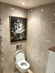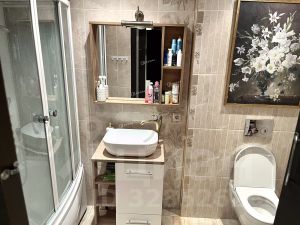 В санузле установлена душевая кабина и унитаз с инсталляцией (экономия места).