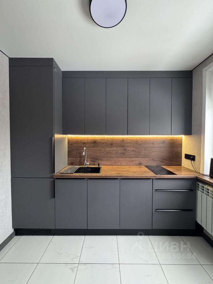 - Современная кухня со встроенной техникой и подсветкой рабочей зоны