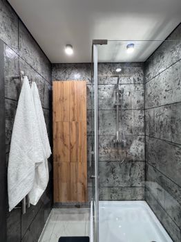 - Стильный санузел с зеркалом с подогревом и подсветкой