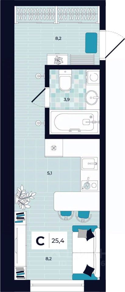 Общая площадь25,4 м²