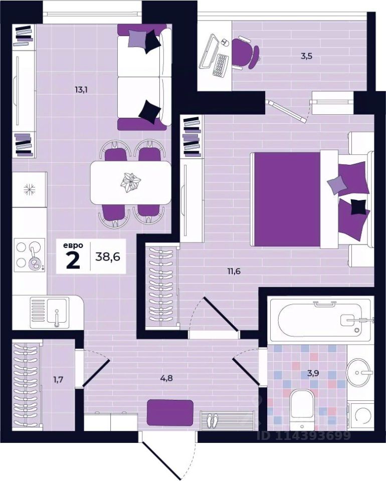 Продаётся 2-комнатная квартира в строящемся доме (Дом 26), срок сдачи: II-кв. 2027, общей площадью 38.6 кв.м., на 13 этаже. Расположение, транспортная доступность Новый жилой комплекс "Юго-Восточный" строится в Туле, в 3,5 км от центра города. Благодаря удачным транспортным развязкам, автолюбители смогут доехать до центральных кварталов примерно за 5 10 минут, составив наиболее быстрый и удобный маршрут с учетом загруженности дорог. Проблем с мобильностью не возникнет и у пассажиров общественного транспорта. Рядом с домом расположены остановки автобусов и маршрутных такси, которые быстро довезут до любого района города. Так, чтобы добраться до центра, следует дойти пешком до остановки "Медтехника", где останавливается маршрутное такси, доезжающее до центральных кварталов всего за 7 8 минут. Инфраструктура Район, где возводится новый жилой комплекс, активно застраивается, и сеть инфраструктуры сов временем будет расширяться. Но и сейчас все, что нужно для комфортной жизни в городе, находится недалеко от жилого комплекса. В шаговой доступности расположены продуктовые магазины: "Виктория", "Овощи-фрукты", Магазин рыбы и мяса птицы, магазин мяса и колбас "У Максима", супермаркеты "Дикси", "Пятерочка", "SPAR". Неподалеку находится гипермаркет "Линия", крупный торговый центр, в котором расположены отделения банков, гипермаркет "Глобус", салон оптики, мебельный магазин "Столплит", зоомагазин "Четыре лапы" и пр. В соседнем здании находится строительный гипермаркет "Леруа Мерлен", за ним крупный магазин товаров для спорта, туризма и активного отдыха "Декатлон".Недалеко от жилого комплекса открыты кафе и рестораны: кофейня "Bonape", пиццерия "Культура", кафе "Вкуснов", кафе быстрого обслуживания "Rapido", ресторан "У фонтана" и пр.В районе есть аптеки, поликлиники, диагностические центры. В шаговой доступности от жилого комплекса расположено несколько детских садиков, в том числе, садик комбинированного вида "Алые паруса". Есть дошкольные отделения, входящие в состав образовательных центров, Центры развития ребенка. Поблизости расположены средние школы, в том числе, школа для детей с ОВЗ. Рядом с жилым комплексом находится Тульская Духовная Семинария и Суворовское училище. Надежность застройщик: достраивает объект ООО Ин-Групп.АрхитектураЖилой комплекс будет представлен 19 монолитно-кирпичными корпусами переменной этажности, выполненными в едином архитектурном стиле. При строительстве ЖК "Юго-Восточный" применяются современные материалы высокого качества, которые обеспечивают надежность домов и комфортный микроклимат в помещениях. Каждая секция оснащается современными лифтами. Помещения общего пользования отделываются экологичными материалами. Квартиры предлагаются однокомнатные (от 43,9 кв. м), двухкомнатные (от 45,8 кв. м), трехкомнатные (от 60,4 кв. м) и четырехкомнатные (от 87,2 кв. м), а также уютные студии (от 28,9 кв. м).На внутренней территории проводится комплексное благоустройство: озеленение, организация игровых площадок, мест для отдыха и за