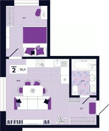 Продаётся 2-комнатная квартира в строящемся доме (Дом 26), срок сдачи: II-кв. 2027, общей площадью 36.9 кв.м., на 9 этаже. Расположение, транспортная доступность Новый жилой комплекс "Юго-Восточный" строится в Туле, в 3,5 км от центра города. Благодаря удачным транспортным развязкам, автолюбители смогут доехать до центральных кварталов примерно за 5 10 минут, составив наиболее быстрый и удобный маршрут с учетом загруженности дорог. Проблем с мобильностью не возникнет и у пассажиров общественного транспорта. Рядом с домом расположены остановки автобусов и маршрутных такси, которые быстро довезут до любого района города. Так, чтобы добраться до центра, следует дойти пешком до остановки "Медтехника", где останавливается маршрутное такси, доезжающее до центральных кварталов всего за 7 8 минут. Инфраструктура Район, где возводится новый жилой комплекс, активно застраивается, и сеть инфраструктуры сов временем будет расширяться. Но и сейчас все, что нужно для комфортной жизни в городе, находится недалеко от жилого комплекса. В шаговой доступности расположены продуктовые магазины: "Виктория", "Овощи-фрукты", Магазин рыбы и мяса птицы, магазин мяса и колбас "У Максима", супермаркеты "Дикси", "Пятерочка", "SPAR". Неподалеку находится гипермаркет "Линия", крупный торговый центр, в котором расположены отделения банков, гипермаркет "Глобус", салон оптики, мебельный магазин "Столплит", зоомагазин "Четыре лапы" и пр. В соседнем здании находится строительный гипермаркет "Леруа Мерлен", за ним крупный магазин товаров для спорта, туризма и активного отдыха "Декатлон".Недалеко от жилого комплекса открыты кафе и рестораны: кофейня "Bonape", пиццерия "Культура", кафе "Вкуснов", кафе быстрого обслуживания "Rapido", ресторан "У фонтана" и пр.В районе есть аптеки, поликлиники, диагностические центры. В шаговой доступности от жилого комплекса расположено несколько детских садиков, в том числе, садик комбинированного вида "Алые паруса". Есть дошкольные отделения, входящие в состав образовательных центров, Центры развития ребенка. Поблизости расположены средние школы, в том числе, школа для детей с ОВЗ. Рядом с жилым комплексом находится Тульская Духовная Семинария и Суворовское училище. Надежность застройщик: достраивает объект ООО Ин-Групп.АрхитектураЖилой комплекс будет представлен 19 монолитно-кирпичными корпусами переменной этажности, выполненными в едином архитектурном стиле. При строительстве ЖК "Юго-Восточный" применяются современные материалы высокого качества, которые обеспечивают надежность домов и комфортный микроклимат в помещениях. Каждая секция оснащается современными лифтами. Помещения общего пользования отделываются экологичными материалами. Квартиры предлагаются однокомнатные (от 43,9 кв. м), двухкомнатные (от 45,8 кв. м), трехкомнатные (от 60,4 кв. м) и четырехкомнатные (от 87,2 кв. м), а также уютные студии (от 28,9 кв. м).На внутренней территории проводится комплексное благоустройство: озеленение, организация игровых площадок, мест для отдыха и зан