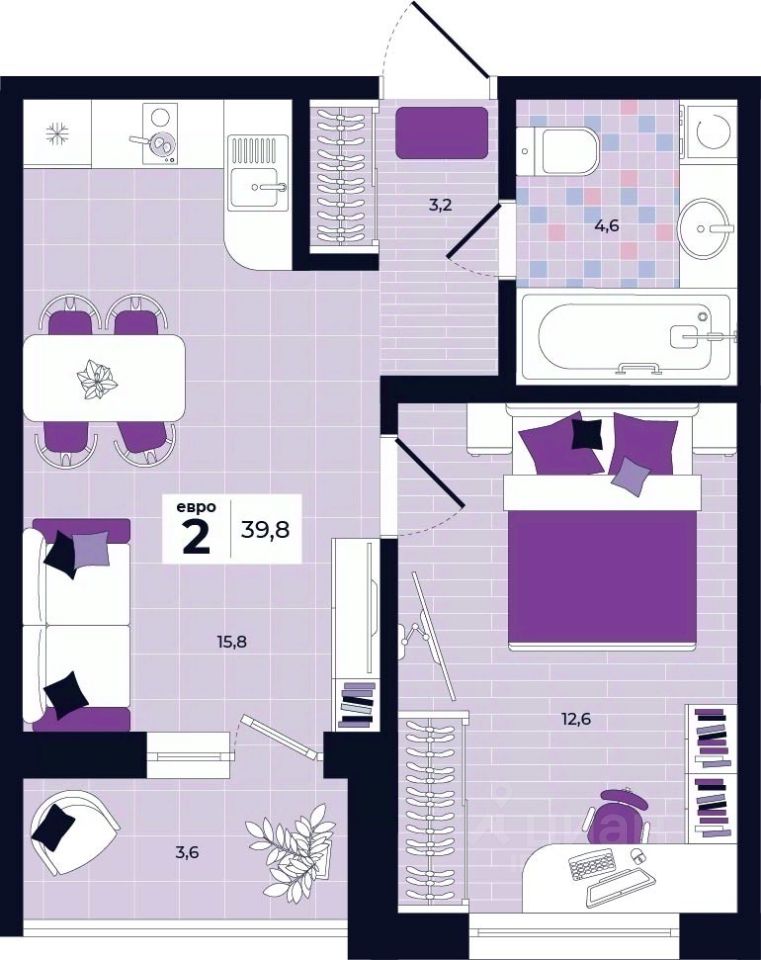 Продаётся 2-комнатная квартира в строящемся доме (Дом 26), срок сдачи: II-кв. 2027, общей площадью 39.8 кв.м., на 3 этаже. Расположение, транспортная доступность Новый жилой комплекс "Юго-Восточный" строится в Туле, в 3,5 км от центра города. Благодаря удачным транспортным развязкам, автолюбители смогут доехать до центральных кварталов примерно за 5 10 минут, составив наиболее быстрый и удобный маршрут с учетом загруженности дорог. Проблем с мобильностью не возникнет и у пассажиров общественного транспорта. Рядом с домом расположены остановки автобусов и маршрутных такси, которые быстро довезут до любого района города. Так, чтобы добраться до центра, следует дойти пешком до остановки "Медтехника", где останавливается маршрутное такси, доезжающее до центральных кварталов всего за 7 8 минут. Инфраструктура Район, где возводится новый жилой комплекс, активно застраивается, и сеть инфраструктуры сов временем будет расширяться. Но и сейчас все, что нужно для комфортной жизни в городе, находится недалеко от жилого комплекса. В шаговой доступности расположены продуктовые магазины: "Виктория", "Овощи-фрукты", Магазин рыбы и мяса птицы, магазин мяса и колбас "У Максима", супермаркеты "Дикси", "Пятерочка", "SPAR". Неподалеку находится гипермаркет "Линия", крупный торговый центр, в котором расположены отделения банков, гипермаркет "Глобус", салон оптики, мебельный магазин "Столплит", зоомагазин "Четыре лапы" и пр. В соседнем здании находится строительный гипермаркет "Леруа Мерлен", за ним крупный магазин товаров для спорта, туризма и активного отдыха "Декатлон".Недалеко от жилого комплекса открыты кафе и рестораны: кофейня "Bonape", пиццерия "Культура", кафе "Вкуснов", кафе быстрого обслуживания "Rapido", ресторан "У фонтана" и пр.В районе есть аптеки, поликлиники, диагностические центры. В шаговой доступности от жилого комплекса расположено несколько детских садиков, в том числе, садик комбинированного вида "Алые паруса". Есть дошкольные отделения, входящие в состав образовательных центров, Центры развития ребенка. Поблизости расположены средние школы, в том числе, школа для детей с ОВЗ. Рядом с жилым комплексом находится Тульская Духовная Семинария и Суворовское училище. Надежность застройщик: достраивает объект ООО Ин-Групп.АрхитектураЖилой комплекс будет представлен 19 монолитно-кирпичными корпусами переменной этажности, выполненными в едином архитектурном стиле. При строительстве ЖК "Юго-Восточный" применяются современные материалы высокого качества, которые обеспечивают надежность домов и комфортный микроклимат в помещениях. Каждая секция оснащается современными лифтами. Помещения общего пользования отделываются экологичными материалами. Квартиры предлагаются однокомнатные (от 43,9 кв. м), двухкомнатные (от 45,8 кв. м), трехкомнатные (от 60,4 кв. м) и четырехкомнатные (от 87,2 кв. м), а также уютные студии (от 28,9 кв. м).На внутренней территории проводится комплексное благоустройство: озеленение, организация игровых площадок, мест для отдыха и зан