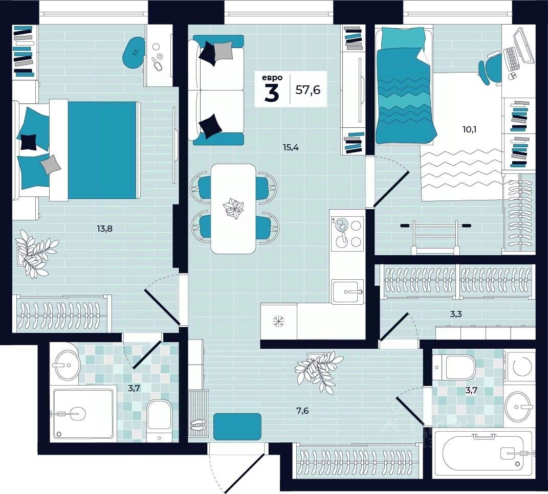 Продаётся 3-комнатная квартира в строящемся доме (Дом 26), срок сдачи: II-кв. 2027, общей площадью 57.6 кв.м., на 9 этаже. Расположение, транспортная доступность Новый жилой комплекс "Юго-Восточный" строится в Туле, в 3,5 км от центра города. Благодаря удачным транспортным развязкам, автолюбители смогут доехать до центральных кварталов примерно за 5 10 минут, составив наиболее быстрый и удобный маршрут с учетом загруженности дорог. Проблем с мобильностью не возникнет и у пассажиров общественного транспорта. Рядом с домом расположены остановки автобусов и маршрутных такси, которые быстро довезут до любого района города. Так, чтобы добраться до центра, следует дойти пешком до остановки "Медтехника", где останавливается маршрутное такси, доезжающее до центральных кварталов всего за 7 8 минут. Инфраструктура Район, где возводится новый жилой комплекс, активно застраивается, и сеть инфраструктуры сов временем будет расширяться. Но и сейчас все, что нужно для комфортной жизни в городе, находится недалеко от жилого комплекса. В шаговой доступности расположены продуктовые магазины: "Виктория", "Овощи-фрукты", Магазин рыбы и мяса птицы, магазин мяса и колбас "У Максима", супермаркеты "Дикси", "Пятерочка", "SPAR". Неподалеку находится гипермаркет "Линия", крупный торговый центр, в котором расположены отделения банков, гипермаркет "Глобус", салон оптики, мебельный магазин "Столплит", зоомагазин "Четыре лапы" и пр. В соседнем здании находится строительный гипермаркет "Леруа Мерлен", за ним крупный магазин товаров для спорта, туризма и активного отдыха "Декатлон".Недалеко от жилого комплекса открыты кафе и рестораны: кофейня "Bonape", пиццерия "Культура", кафе "Вкуснов", кафе быстрого обслуживания "Rapido", ресторан "У фонтана" и пр.В районе есть аптеки, поликлиники, диагностические центры. В шаговой доступности от жилого комплекса расположено несколько детских садиков, в том числе, садик комбинированного вида "Алые паруса". Есть дошкольные отделения, входящие в состав образовательных центров, Центры развития ребенка. Поблизости расположены средние школы, в том числе, школа для детей с ОВЗ. Рядом с жилым комплексом находится Тульская Духовная Семинария и Суворовское училище. Надежность застройщик: достраивает объект ООО Ин-Групп.АрхитектураЖилой комплекс будет представлен 19 монолитно-кирпичными корпусами переменной этажности, выполненными в едином архитектурном стиле. При строительстве ЖК "Юго-Восточный" применяются современные материалы высокого качества, которые обеспечивают надежность домов и комфортный микроклимат в помещениях. Каждая секция оснащается современными лифтами. Помещения общего пользования отделываются экологичными материалами. Квартиры предлагаются однокомнатные (от 43,9 кв. м), двухкомнатные (от 45,8 кв. м), трехкомнатные (от 60,4 кв. м) и четырехкомнатные (от 87,2 кв. м), а также уютные студии (от 28,9 кв. м).На внутренней территории проводится комплексное благоустройство: озеленение, организация игровых площадок, мест для отдыха и зан