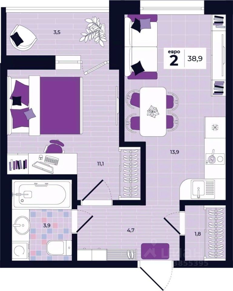 Продаётся 2-комнатная квартира в строящемся доме (Дом 26), срок сдачи: II-кв. 2027, общей площадью 38.9 кв.м., на 12 этаже. Расположение, транспортная доступность Новый жилой комплекс "Юго-Восточный" строится в Туле, в 3,5 км от центра города. Благодаря удачным транспортным развязкам, автолюбители смогут доехать до центральных кварталов примерно за 5 10 минут, составив наиболее быстрый и удобный маршрут с учетом загруженности дорог. Проблем с мобильностью не возникнет и у пассажиров общественного транспорта. Рядом с домом расположены остановки автобусов и маршрутных такси, которые быстро довезут до любого района города. Так, чтобы добраться до центра, следует дойти пешком до остановки "Медтехника", где останавливается маршрутное такси, доезжающее до центральных кварталов всего за 7 8 минут. Инфраструктура Район, где возводится новый жилой комплекс, активно застраивается, и сеть инфраструктуры сов временем будет расширяться. Но и сейчас все, что нужно для комфортной жизни в городе, находится недалеко от жилого комплекса. В шаговой доступности расположены продуктовые магазины: "Виктория", "Овощи-фрукты", Магазин рыбы и мяса птицы, магазин мяса и колбас "У Максима", супермаркеты "Дикси", "Пятерочка", "SPAR". Неподалеку находится гипермаркет "Линия", крупный торговый центр, в котором расположены отделения банков, гипермаркет "Глобус", салон оптики, мебельный магазин "Столплит", зоомагазин "Четыре лапы" и пр. В соседнем здании находится строительный гипермаркет "Леруа Мерлен", за ним крупный магазин товаров для спорта, туризма и активного отдыха "Декатлон".Недалеко от жилого комплекса открыты кафе и рестораны: кофейня "Bonape", пиццерия "Культура", кафе "Вкуснов", кафе быстрого обслуживания "Rapido", ресторан "У фонтана" и пр.В районе есть аптеки, поликлиники, диагностические центры. В шаговой доступности от жилого комплекса расположено несколько детских садиков, в том числе, садик комбинированного вида "Алые паруса". Есть дошкольные отделения, входящие в состав образовательных центров, Центры развития ребенка. Поблизости расположены средние школы, в том числе, школа для детей с ОВЗ. Рядом с жилым комплексом находится Тульская Духовная Семинария и Суворовское училище. Надежность застройщик: достраивает объект ООО Ин-Групп.АрхитектураЖилой комплекс будет представлен 19 монолитно-кирпичными корпусами переменной этажности, выполненными в едином архитектурном стиле. При строительстве ЖК "Юго-Восточный" применяются современные материалы высокого качества, которые обеспечивают надежность домов и комфортный микроклимат в помещениях. Каждая секция оснащается современными лифтами. Помещения общего пользования отделываются экологичными материалами. Квартиры предлагаются однокомнатные (от 43,9 кв. м), двухкомнатные (от 45,8 кв. м), трехкомнатные (от 60,4 кв. м) и четырехкомнатные (от 87,2 кв. м), а также уютные студии (от 28,9 кв. м).На внутренней территории проводится комплексное благоустройство: озеленение, организация игровых площадок, мест для отдыха и за