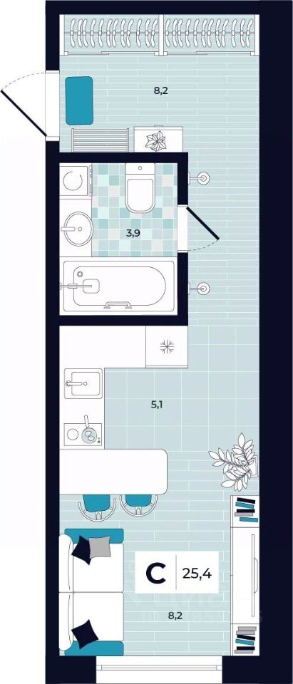Продаётся студия в строящемся доме (Дом 26), срок сдачи: II-кв. 2027, общей площадью 25.4 кв.м., на 11 этаже. Расположение, транспортная доступность Новый жилой комплекс "Юго-Восточный" строится в Туле, в 3,5 км от центра города. Благодаря удачным транспортным развязкам, автолюбители смогут доехать до центральных кварталов примерно за 5 10 минут, составив наиболее быстрый и удобный маршрут с учетом загруженности дорог. Проблем с мобильностью не возникнет и у пассажиров общественного транспорта. Рядом с домом расположены остановки автобусов и маршрутных такси, которые быстро довезут до любого района города. Так, чтобы добраться до центра, следует дойти пешком до остановки "Медтехника", где останавливается маршрутное такси, доезжающее до центральных кварталов всего за 7 8 минут. Инфраструктура Район, где возводится новый жилой комплекс, активно застраивается, и сеть инфраструктуры сов временем будет расширяться. Но и сейчас все, что нужно для комфортной жизни в городе, находится недалеко от жилого комплекса. В шаговой доступности расположены продуктовые магазины: "Виктория", "Овощи-фрукты", Магазин рыбы и мяса птицы, магазин мяса и колбас "У Максима", супермаркеты "Дикси", "Пятерочка", "SPAR". Неподалеку находится гипермаркет "Линия", крупный торговый центр, в котором расположены отделения банков, гипермаркет "Глобус", салон оптики, мебельный магазин "Столплит", зоомагазин "Четыре лапы" и пр. В соседнем здании находится строительный гипермаркет "Леруа Мерлен", за ним крупный магазин товаров для спорта, туризма и активного отдыха "Декатлон".Недалеко от жилого комплекса открыты кафе и рестораны: кофейня "Bonape", пиццерия "Культура", кафе "Вкуснов", кафе быстрого обслуживания "Rapido", ресторан "У фонтана" и пр.В районе есть аптеки, поликлиники, диагностические центры. В шаговой доступности от жилого комплекса расположено несколько детских садиков, в том числе, садик комбинированного вида "Алые паруса". Есть дошкольные отделения, входящие в состав образовательных центров, Центры развития ребенка. Поблизости расположены средние школы, в том числе, школа для детей с ОВЗ. Рядом с жилым комплексом находится Тульская Духовная Семинария и Суворовское училище. Надежность застройщик: достраивает объект ООО Ин-Групп.АрхитектураЖилой комплекс будет представлен 19 монолитно-кирпичными корпусами переменной этажности, выполненными в едином архитектурном стиле. При строительстве ЖК "Юго-Восточный" применяются современные материалы высокого качества, которые обеспечивают надежность домов и комфортный микроклимат в помещениях. Каждая секция оснащается современными лифтами. Помещения общего пользования отделываются экологичными материалами. Квартиры предлагаются однокомнатные (от 43,9 кв. м), двухкомнатные (от 45,8 кв. м), трехкомнатные (от 60,4 кв. м) и четырехкомнатные (от 87,2 кв. м), а также уютные студии (от 28,9 кв. м).На внутренней территории проводится комплексное благоустройство: озеленение, организация игровых площадок, мест для отдыха и занятий спортом,