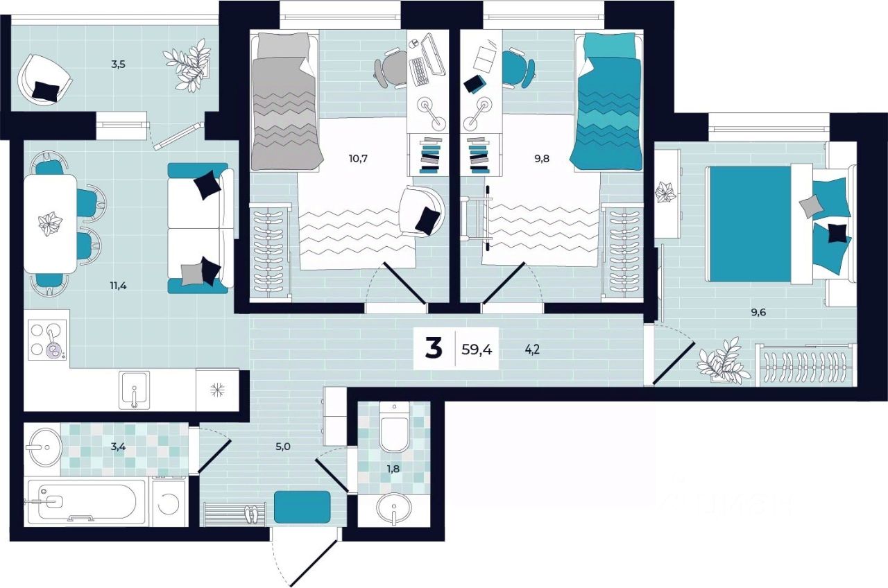 Продаётся 3-комнатная квартира в строящемся доме (Дом 26), срок сдачи: II-кв. 2027, общей площадью 59.4 кв.м., на 14 этаже. Расположение, транспортная доступность Новый жилой комплекс "Юго-Восточный" строится в Туле, в 3,5 км от центра города. Благодаря удачным транспортным развязкам, автолюбители смогут доехать до центральных кварталов примерно за 5 10 минут, составив наиболее быстрый и удобный маршрут с учетом загруженности дорог. Проблем с мобильностью не возникнет и у пассажиров общественного транспорта. Рядом с домом расположены остановки автобусов и маршрутных такси, которые быстро довезут до любого района города. Так, чтобы добраться до центра, следует дойти пешком до остановки "Медтехника", где останавливается маршрутное такси, доезжающее до центральных кварталов всего за 7 8 минут. Инфраструктура Район, где возводится новый жилой комплекс, активно застраивается, и сеть инфраструктуры сов временем будет расширяться. Но и сейчас все, что нужно для комфортной жизни в городе, находится недалеко от жилого комплекса. В шаговой доступности расположены продуктовые магазины: "Виктория", "Овощи-фрукты", Магазин рыбы и мяса птицы, магазин мяса и колбас "У Максима", супермаркеты "Дикси", "Пятерочка", "SPAR". Неподалеку находится гипермаркет "Линия", крупный торговый центр, в котором расположены отделения банков, гипермаркет "Глобус", салон оптики, мебельный магазин "Столплит", зоомагазин "Четыре лапы" и пр. В соседнем здании находится строительный гипермаркет "Леруа Мерлен", за ним крупный магазин товаров для спорта, туризма и активного отдыха "Декатлон".Недалеко от жилого комплекса открыты кафе и рестораны: кофейня "Bonape", пиццерия "Культура", кафе "Вкуснов", кафе быстрого обслуживания "Rapido", ресторан "У фонтана" и пр.В районе есть аптеки, поликлиники, диагностические центры. В шаговой доступности от жилого комплекса расположено несколько детских садиков, в том числе, садик комбинированного вида "Алые паруса". Есть дошкольные отделения, входящие в состав образовательных центров, Центры развития ребенка. Поблизости расположены средние школы, в том числе, школа для детей с ОВЗ. Рядом с жилым комплексом находится Тульская Духовная Семинария и Суворовское училище. Надежность застройщик: достраивает объект ООО Ин-Групп.АрхитектураЖилой комплекс будет представлен 19 монолитно-кирпичными корпусами переменной этажности, выполненными в едином архитектурном стиле. При строительстве ЖК "Юго-Восточный" применяются современные материалы высокого качества, которые обеспечивают надежность домов и комфортный микроклимат в помещениях. Каждая секция оснащается современными лифтами. Помещения общего пользования отделываются экологичными материалами. Квартиры предлагаются однокомнатные (от 43,9 кв. м), двухкомнатные (от 45,8 кв. м), трехкомнатные (от 60,4 кв. м) и четырехкомнатные (от 87,2 кв. м), а также уютные студии (от 28,9 кв. м).На внутренней территории проводится комплексное благоустройство: озеленение, организация игровых площадок, мест для отдыха и за