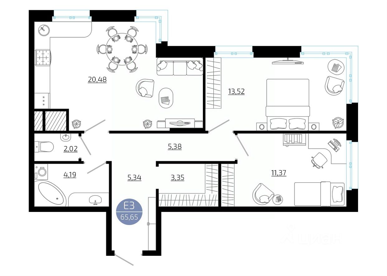 Общая площадь65,65 м²