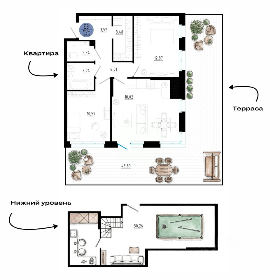 Квартира в ЖК "Первый Парковый" — свой дом в городе, рядом с парком Урбан-виллы в парке — формат, где сочетаются тишина, зелень и удобство города. Двухуровневые квартиры с террасами. У тебя свой дом в городе. Здесь можно раскинуть жизнь на двух уровнях. А терраса — место, где можно просто быть: пить кофе, смотреть на небо, никуда не спешить. Малоэтажный дом 57 этажей. Камерная среда, где всё удобно для жизни. Закрытый двор без машин. Дети гуляют рядом с домом, и вы спокойны. Во дворе только жители, зелень и тишина. Парк начинается прямо от подъезда. Можно выйти на прогулку, пробежку или просто подышать свежим воздухом — в любое время. Всё нужное рядом: школы, детские сады, магазины, остановки. Жизнь становится проще — меньше времени на дорогу, больше на себя и близких. Фасады из керамического кирпича — дом выглядит аккуратно и сохраняет внешний вид на годы. Внутри — тишина и комфортный микроклимат. Подходит для тех, кто хочет свой дом, но не готов уезжать из города. Здесь есть и приватность, и привычная инфраструктура. Звоните — подберём планировку и покажем варианты. Добавьте в избранное, чтобы не потерять этот формат — такие квартиры быстро находят своих.