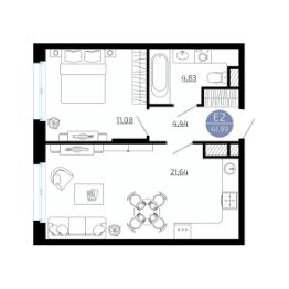Продается 1-комн. квартира, 41,99 м²