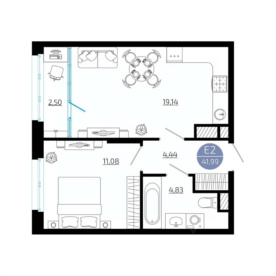 Общая площадь41,99 м²