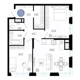 Общая площадь57,52 м²