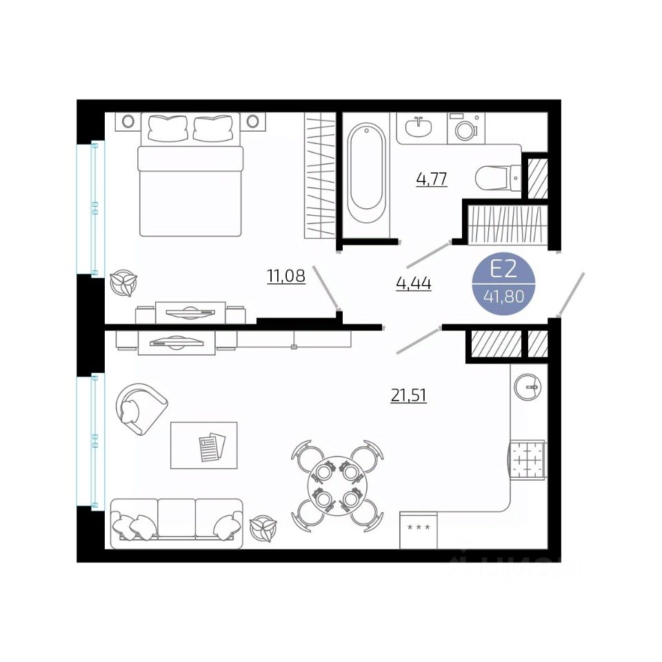 Общая площадь41,8 м²