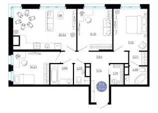 Общая площадь76,84 м²