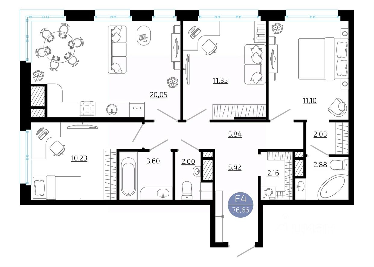 Общая площадь76,66 м²