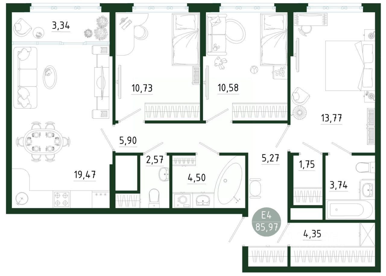 Продаётся 3-комнатная квартира в строящемся доме (Позиция 1), срок сдачи: III-кв. 2029, общей площадью 85.97 кв.м., на 8 этаже. Новый жилой комплекс в г. Тула "Платон Парк" от застройщика ООО "СЗ "МОНОЛИТ""