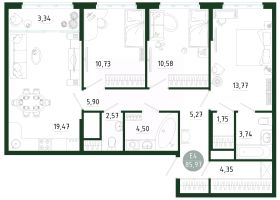 Продаётся 3-комнатная квартира в строящемся доме (Позиция 1), срок сдачи: III-кв. 2029, общей площадью 85.97 кв.м., на 8 этаже. Новый жилой комплекс в г. Тула "Платон Парк" от застройщика ООО "СЗ "МОНОЛИТ""