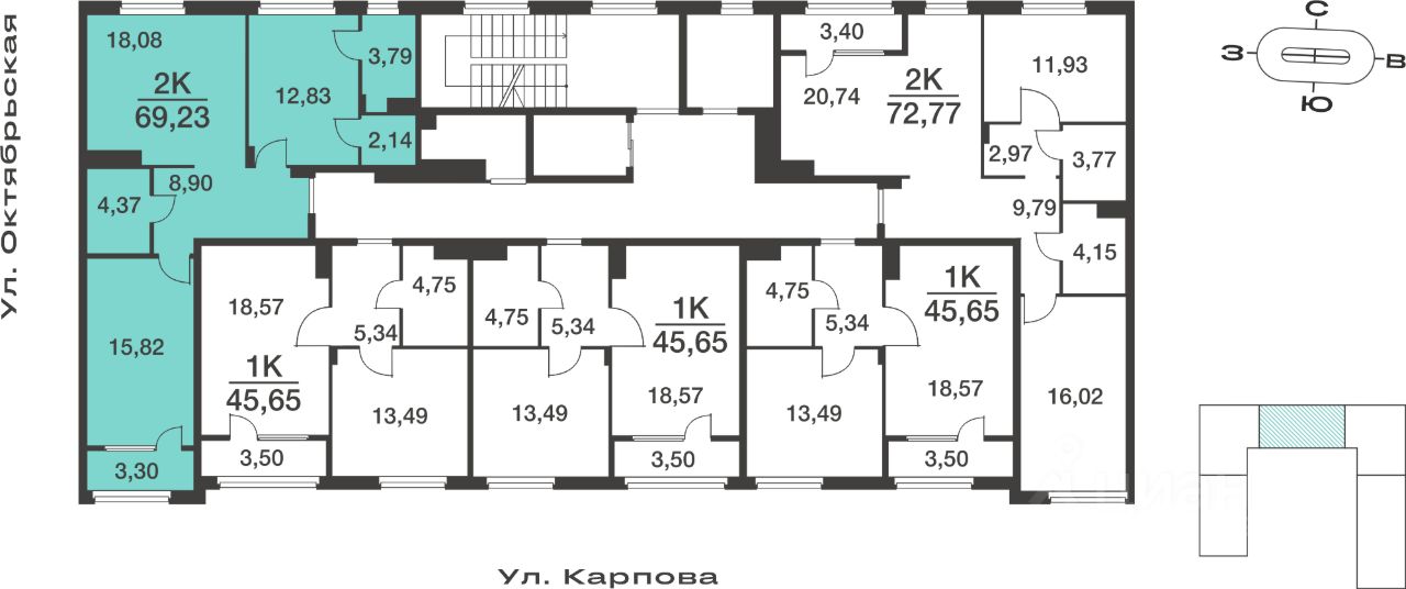 Общая площадь69,23 м²