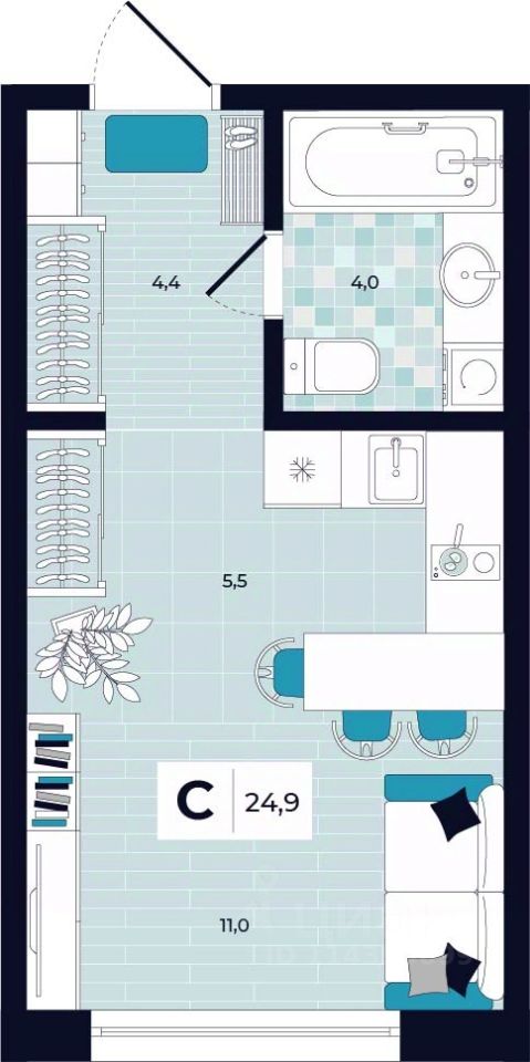 Общая площадь24,9 м²