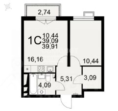 Квартира с удобной планировкой: просторный холл 5,31 м2. кладовка 3,1 м2 для хранения вещей, спальня 10,5 м2, кухня-гостиная 16,2 м2 с выходом на балкон площадью 2,74 м2 - дополнительное помещение, которое можно использовать как рабочий кабинет.