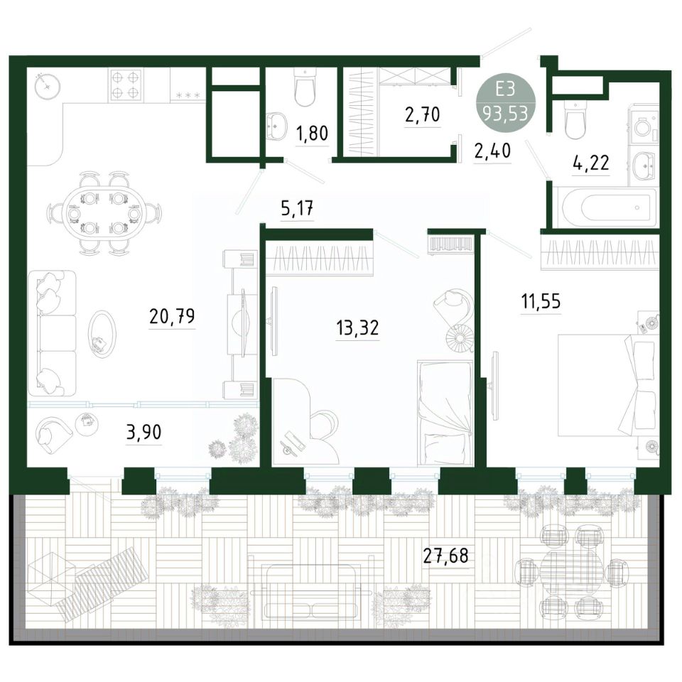 Продаётся 3-комнатная квартира в строящемся доме (Позиция 1), срок сдачи: III-кв. 2029, общей площадью 93.53 кв.м., на 1 этаже. Новый жилой комплекс в г. Тула "Платон Парк" от застройщика ООО "СЗ "МОНОЛИТ""
