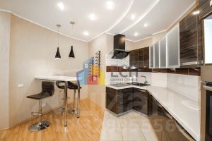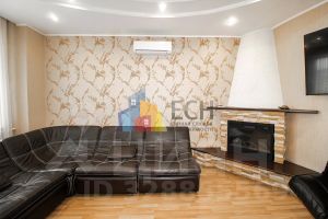 - кухня-гостиная - большая, с барной стойкой, столовой зоной, большим кожаным диваном и электрическим камином. Идеально для приема гостей и проведения праздников;