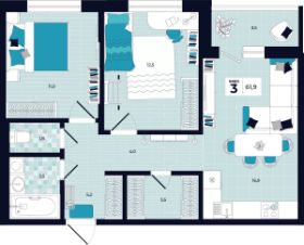 Продаётся 3-комнатная квартира в строящемся доме (Дом 26), срок сдачи: II-кв. 2027, общей площадью 61.9 кв.м., на 2 этаже. Расположение, транспортная доступность Новый жилой комплекс "Юго-Восточный" строится в Туле, в 3,5 км от центра города. Благодаря удачным транспортным развязкам, автолюбители смогут доехать до центральных кварталов примерно за 5 10 минут, составив наиболее быстрый и удобный маршрут с учетом загруженности дорог. Проблем с мобильностью не возникнет и у пассажиров общественного транспорта. Рядом с домом расположены остановки автобусов и маршрутных такси, которые быстро довезут до любого района города. Так, чтобы добраться до центра, следует дойти пешком до остановки "Медтехника", где останавливается маршрутное такси, доезжающее до центральных кварталов всего за 7 8 минут. Инфраструктура Район, где возводится новый жилой комплекс, активно застраивается, и сеть инфраструктуры сов временем будет расширяться. Но и сейчас все, что нужно для комфортной жизни в городе, находится недалеко от жилого комплекса. В шаговой доступности расположены продуктовые магазины: "Виктория", "Овощи-фрукты", Магазин рыбы и мяса птицы, магазин мяса и колбас "У Максима", супермаркеты "Дикси", "Пятерочка", "SPAR". Неподалеку находится гипермаркет "Линия", крупный торговый центр, в котором расположены отделения банков, гипермаркет "Глобус", салон оптики, мебельный магазин "Столплит", зоомагазин "Четыре лапы" и пр. В соседнем здании находится строительный гипермаркет "Леруа Мерлен", за ним крупный магазин товаров для спорта, туризма и активного отдыха "Декатлон".Недалеко от жилого комплекса открыты кафе и рестораны: кофейня "Bonape", пиццерия "Культура", кафе "Вкуснов", кафе быстрого обслуживания "Rapido", ресторан "У фонтана" и пр.В районе есть аптеки, поликлиники, диагностические центры. В шаговой доступности от жилого комплекса расположено несколько детских садиков, в том числе, садик комбинированного вида "Алые паруса". Есть дошкольные отделения, входящие в состав образовательных центров, Центры развития ребенка. Поблизости расположены средние школы, в том числе, школа для детей с ОВЗ. Рядом с жилым комплексом находится Тульская Духовная Семинария и Суворовское училище. Надежность застройщик: достраивает объект ООО Ин-Групп.АрхитектураЖилой комплекс будет представлен 19 монолитно-кирпичными корпусами переменной этажности, выполненными в едином архитектурном стиле. При строительстве ЖК "Юго-Восточный" применяются современные материалы высокого качества, которые обеспечивают надежность домов и комфортный микроклимат в помещениях. Каждая секция оснащается современными лифтами. Помещения общего пользования отделываются экологичными материалами. Квартиры предлагаются однокомнатные (от 43,9 кв. м), двухкомнатные (от 45,8 кв. м), трехкомнатные (от 60,4 кв. м) и четырехкомнатные (от 87,2 кв. м), а также уютные студии (от 28,9 кв. м).На внутренней территории проводится комплексное благоустройство: озеленение, организация игровых площадок, мест для отдыха и зан