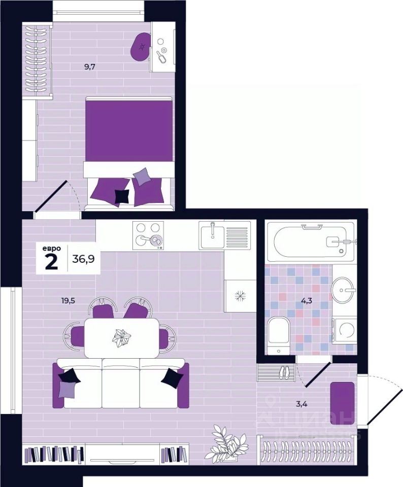 Общая площадь36,9 м²