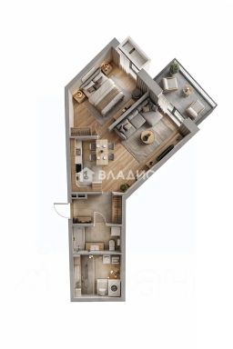 Квартира с необычной интересной планировкой - дает простор для вашей фантазии.