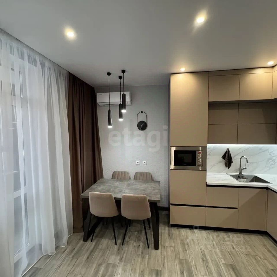Стильная квартира-студия площадью 27 м² с современным ремонтом, выполненным в актуальном дизайне. Пространство грамотно зонировано: уютная жилая зона, функциональная кухня и удобное место для хранения.