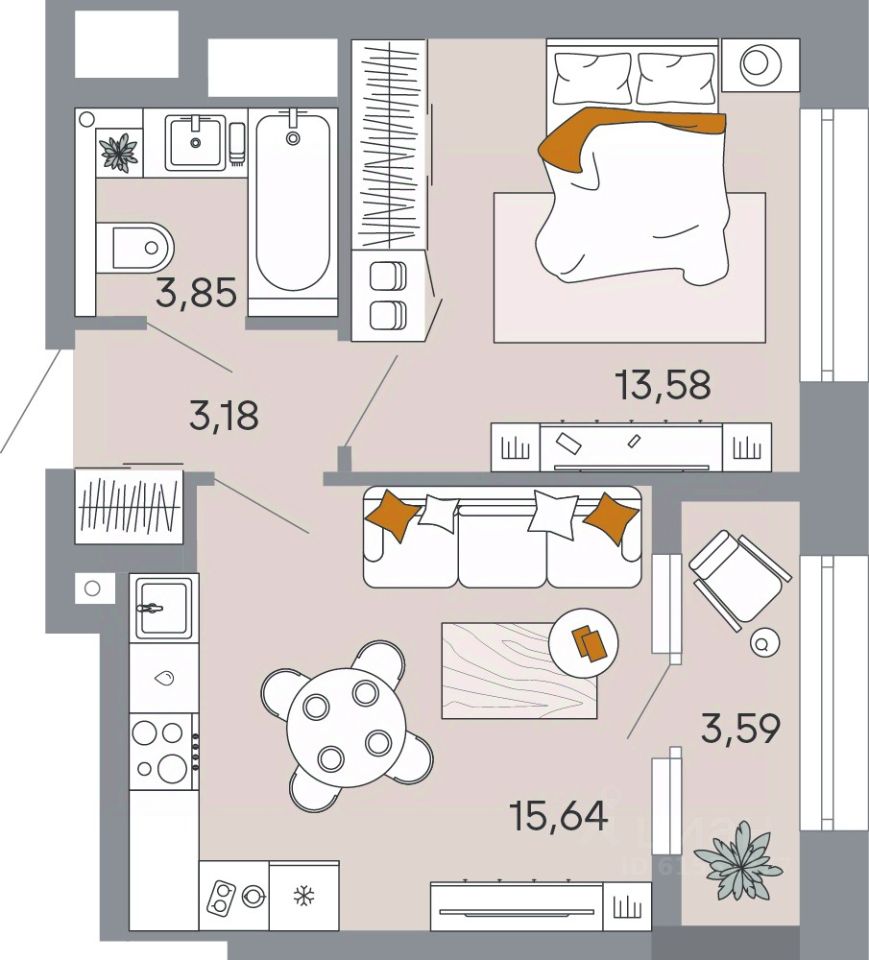 Жилая площадь13,6 м²