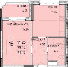 Общая площадь 35,5 кв.м грамотно распределена между жилой комнатой 14.5 кв.м и просторной кухней 12 кв.м. Сaнузeл совмещенный. Большая лоджия.