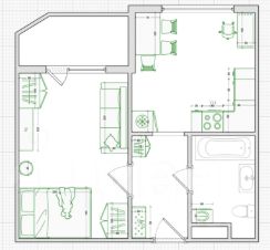 Квартира представляет собой отличную основу для создания интерьера по Вашему вкусу. Кухню можно организовать как просторную кухню-гостиную с компактным угловым гарнитуром, или сделать большое рабочее пространство для воплощения кулинарных шедевров.