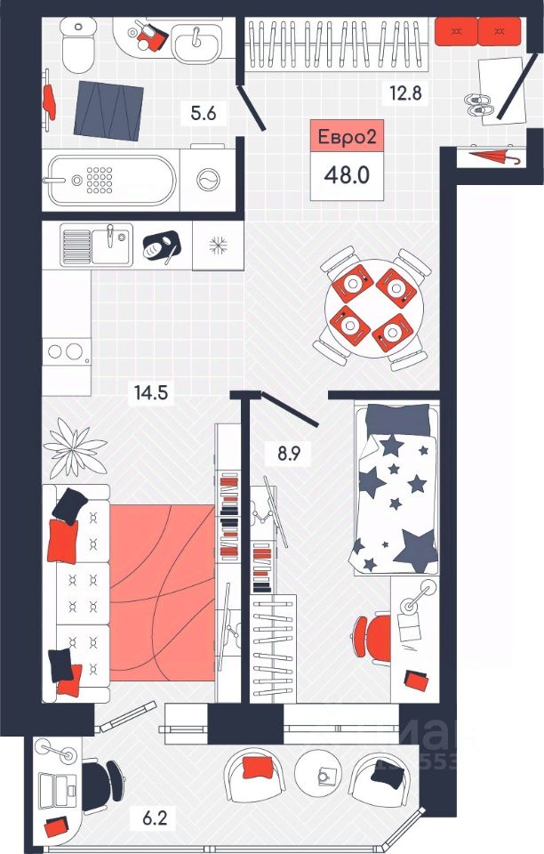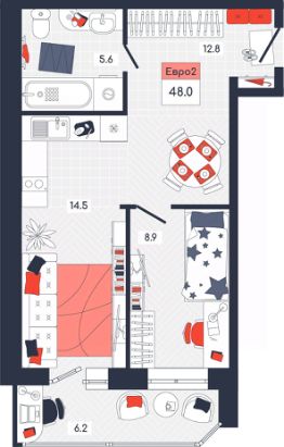 Общая площадь48 м²