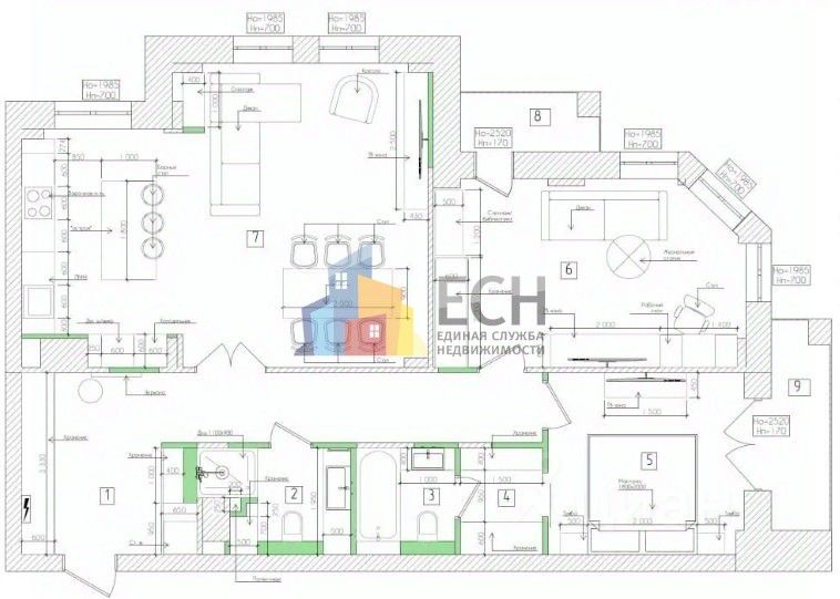 Выполнены полностью черновые работы. Электрика разведена, сделана стяжка пола, стены выровнены под финишную отделку., Есть новые радиаторы. Сделаны трассы под кондиционеры. Ламинат есть. В подарок идёт дизайн-проект.