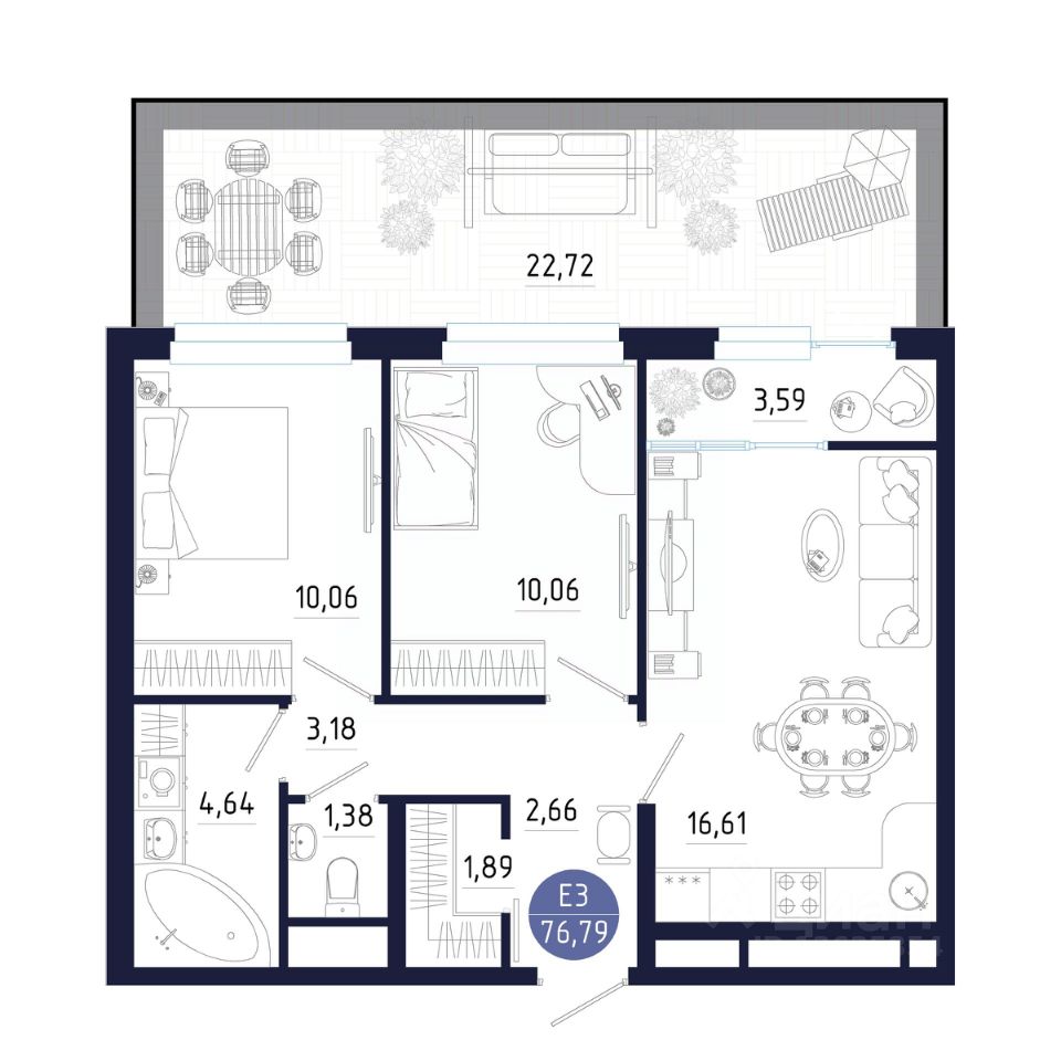 Общая площадь76,79 м²