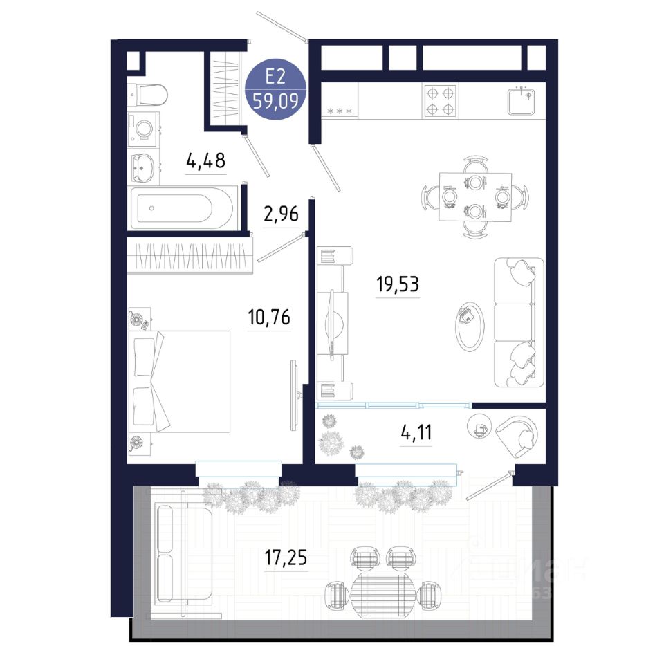 Общая площадь59,09 м²