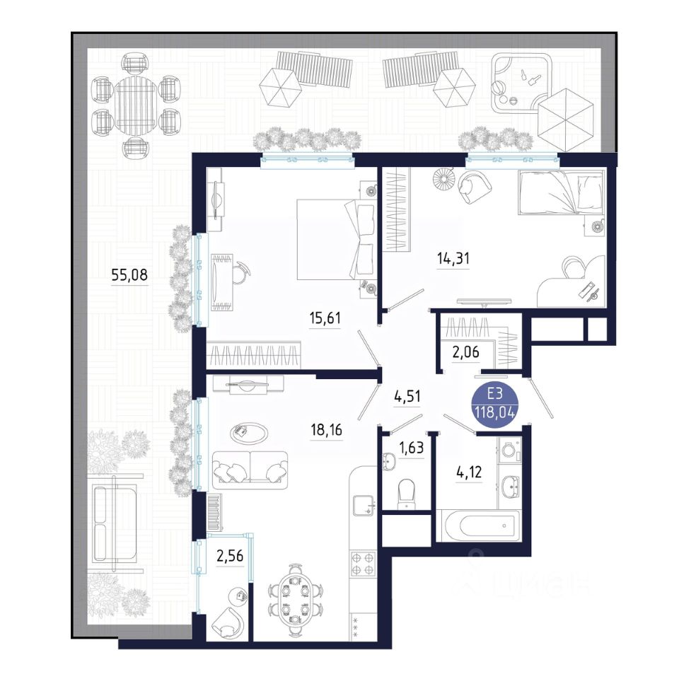 Общая площадь118,04 м²