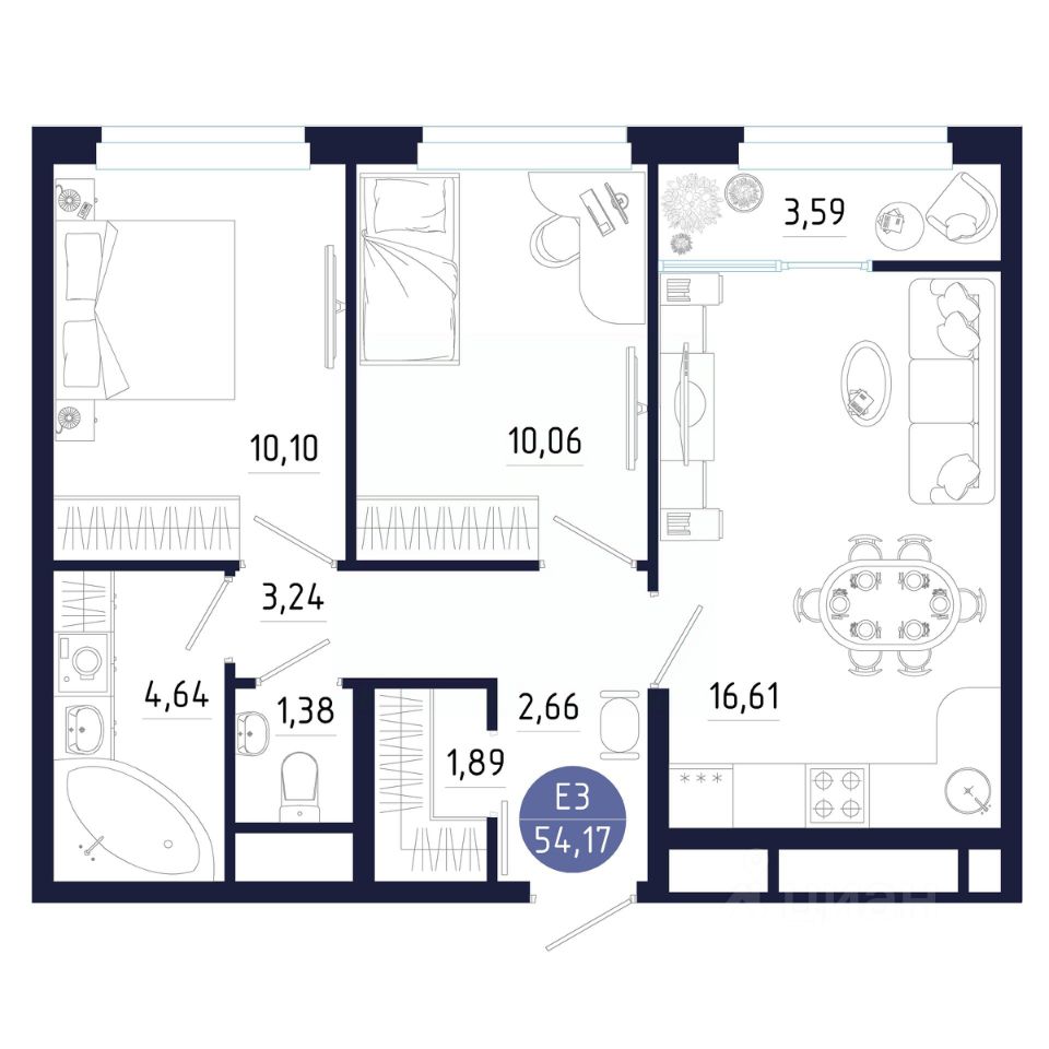 Общая площадь54,17 м²