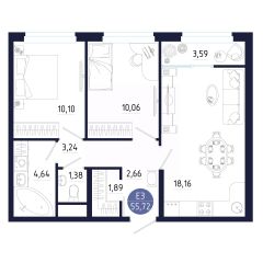 Общая площадь55,72 м²