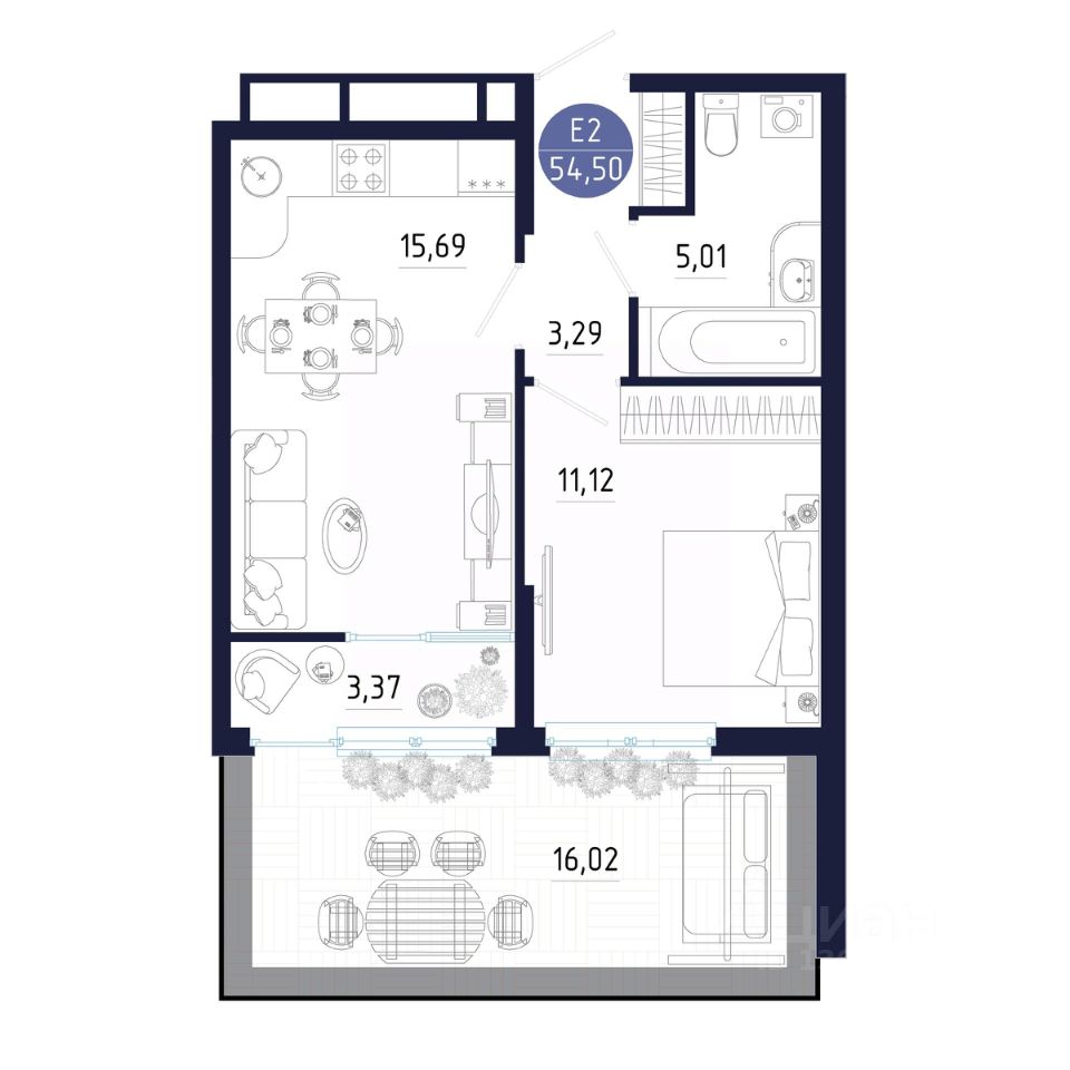 Общая площадь54,5 м²
