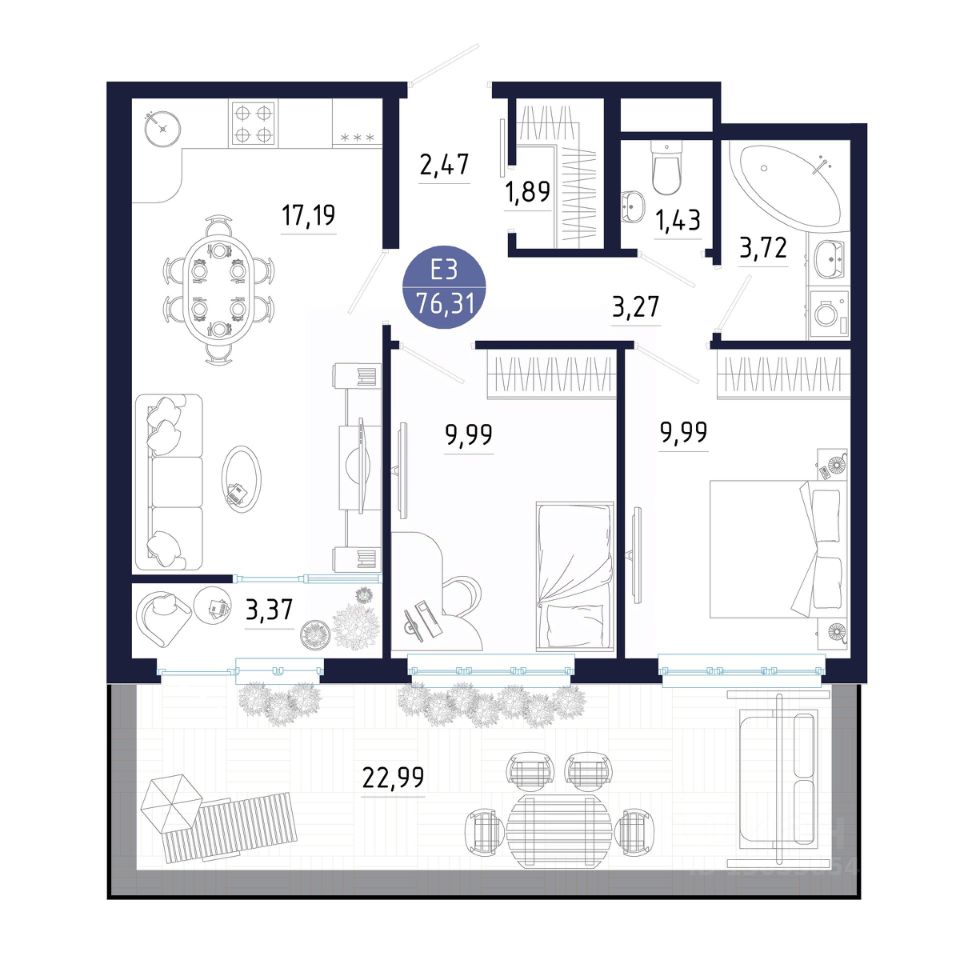 Общая площадь76,31 м²