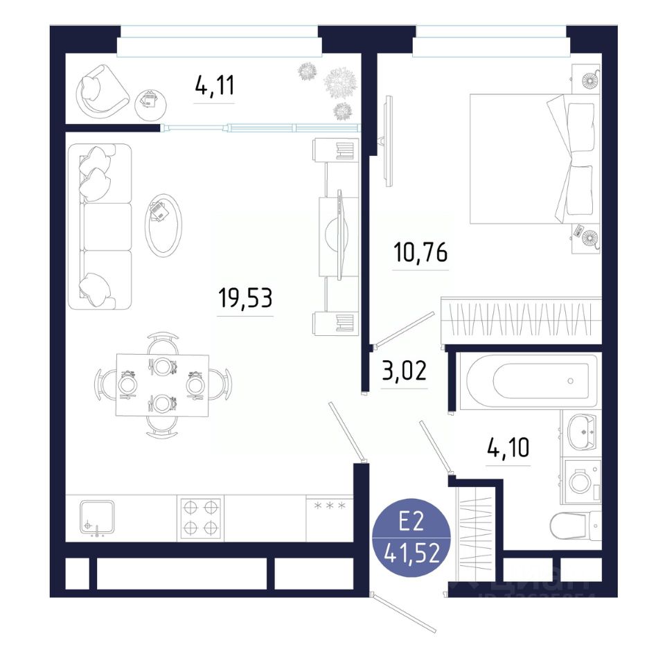 Общая площадь41,52 м²