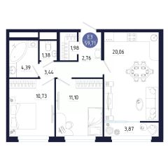 Общая площадь59,71 м²